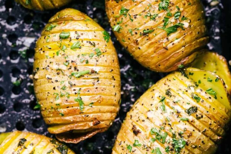 AIR FRYER GARLIC BUTTER HASSELBACK POTATOES