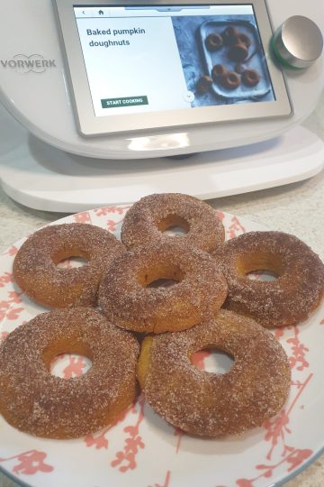 These Thermomix baked donuts are light, fluffy and delicious either dipped in cinnamon sugar or glazed with a sweet sticky frosting. Course: Dessert, Snack Cuisine: International Preparation time: 10min Total time:35min Portion: 24 portion(s) Level: easy Ingredients For sugar cinnamon donuts( Optional) For glazed donuts(Optional) Instructions For cinnamon sugar donuts For glazed donuts Nutrition Calories: 222kcal | Carbohydrates: 35g | Protein: 4g | Fat: 8g | Saturated Fat: 5g | Polyunsaturated Fat: 2g | Cholesterol: 35mg | Sodium: 252mg | Fiber: 1g | Sugar: 18g