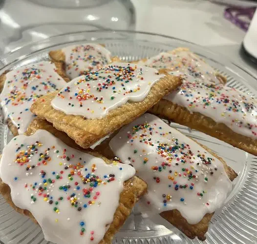 - Once the pop-tarts are completely cool, spoon the glaze over the top and decorate with sprinkles if desired.